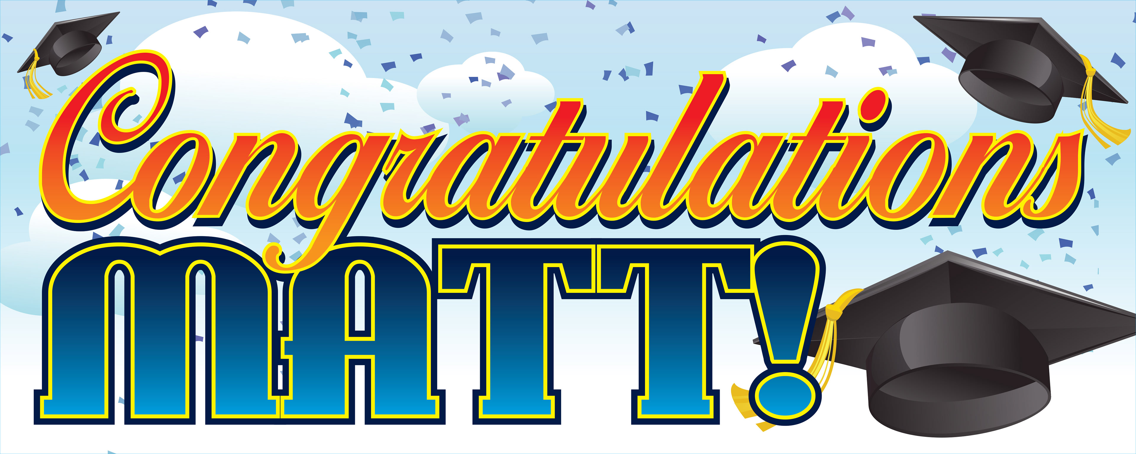Graduation banner. Colorful banner featuring creative typography mixed with stock art. Produced for Dlux Printing