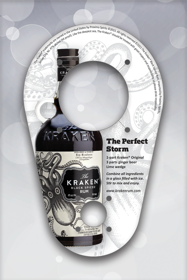 Diecut bottle neck hangers featuring cocktail recipes. It was a fun challenge to fit product images and all the necessary text into a very limited area. Produced for Product Identification, Inc.