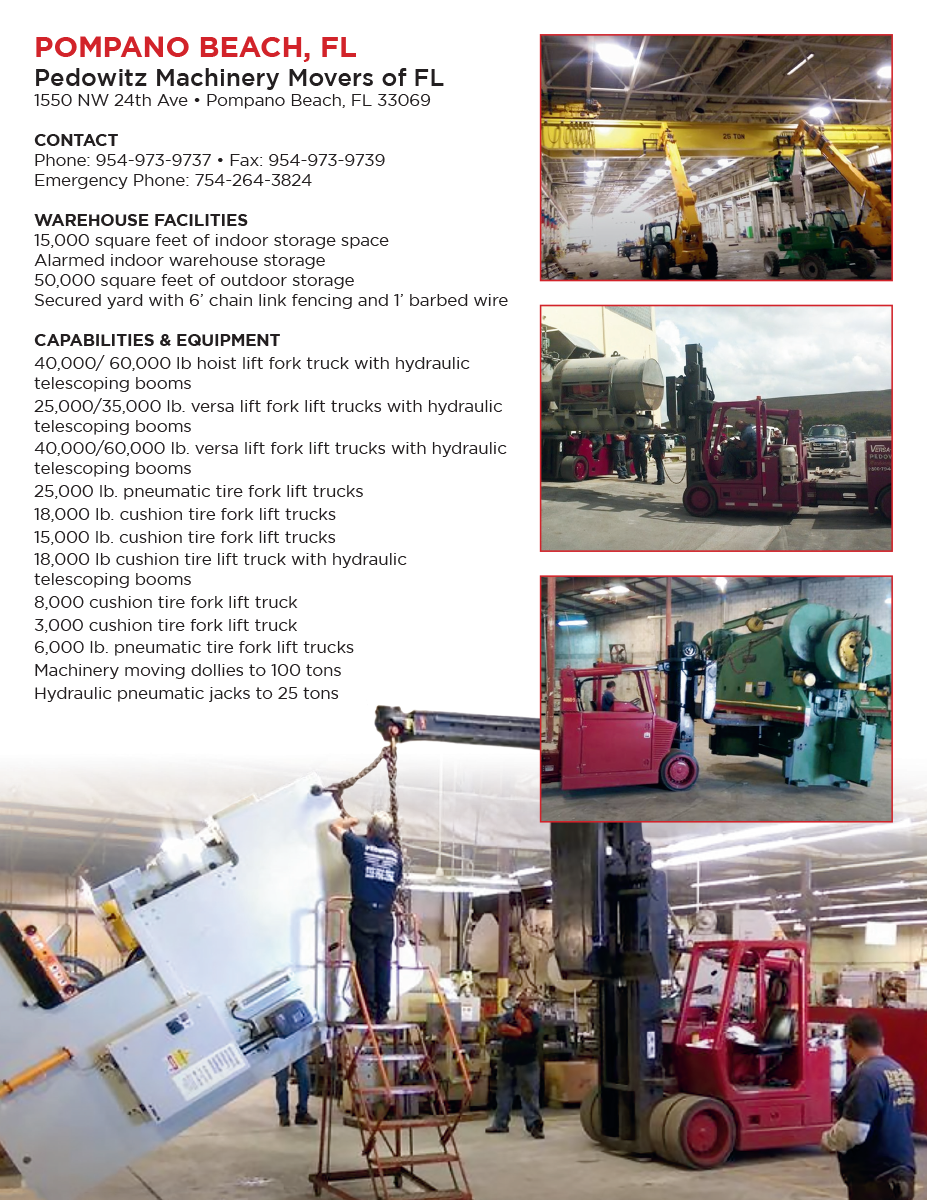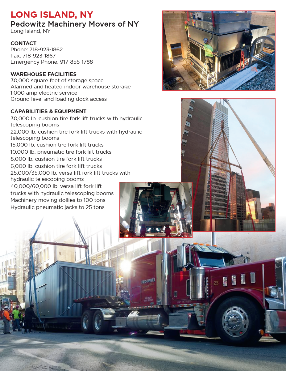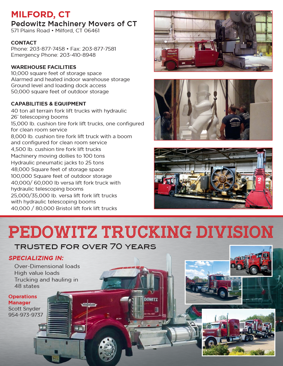 Booklet for Pedowitz Machinery Movers. Produced for Telepathic Graphics. The booklet highlights multiple locations and the capabilities and services that each offer. Customer requested an easy to read layout that was bright and colorful.