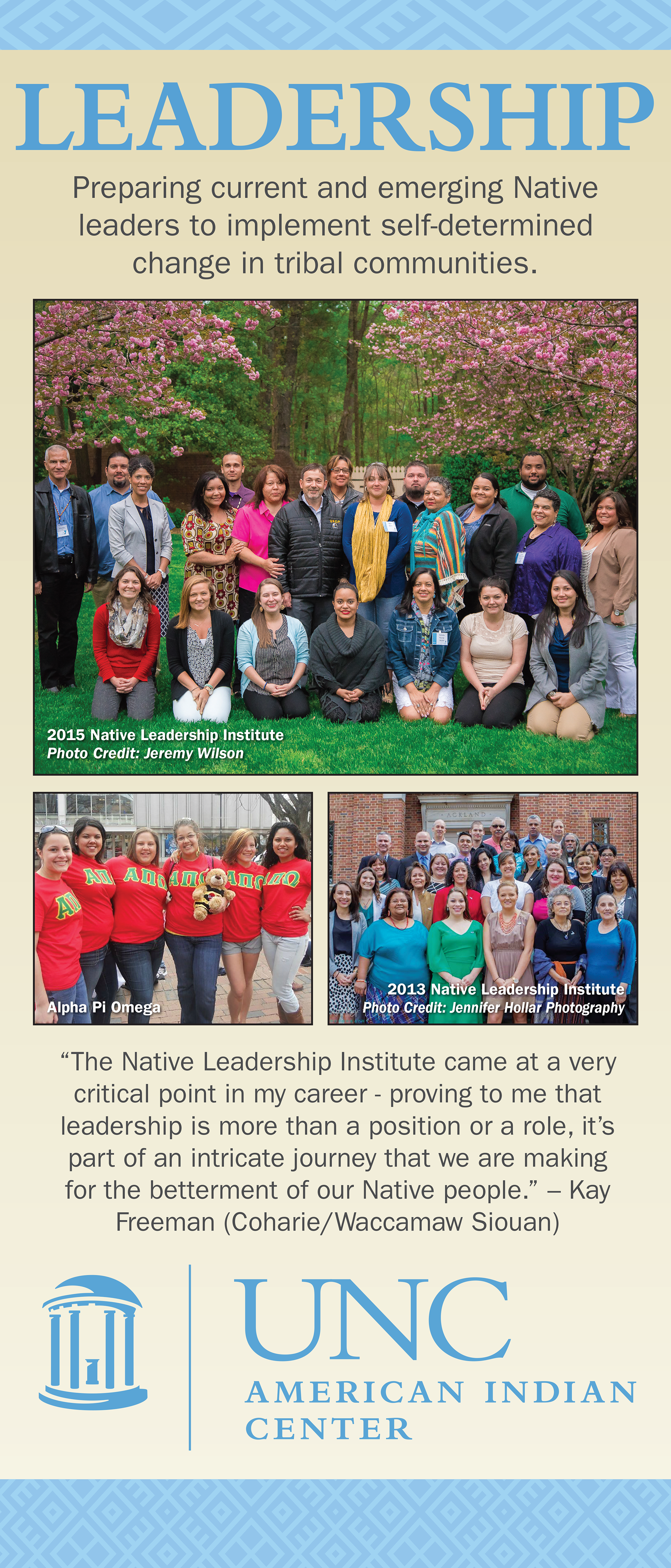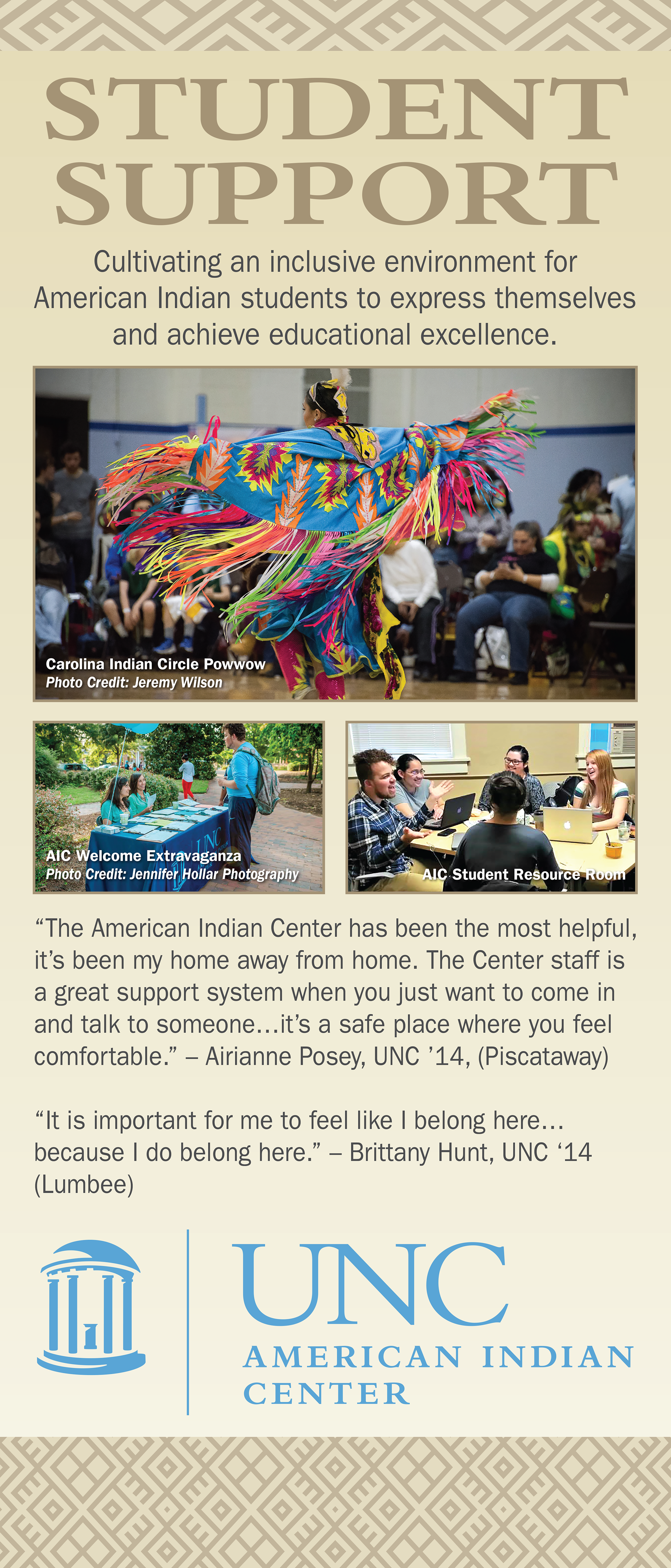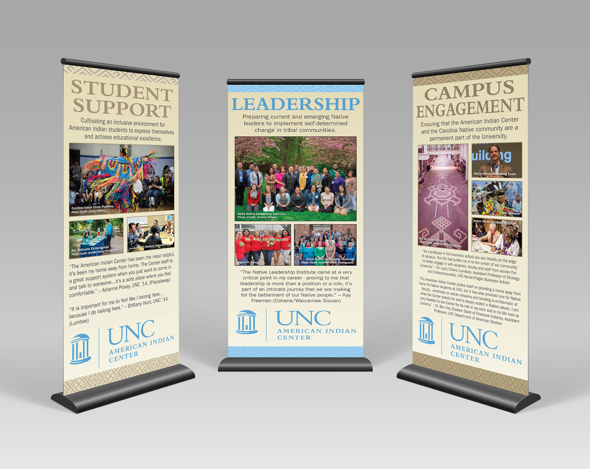 Display banners for the UNC American Indian Center. A set of retractable banners for special events highlighting the various aspects of the Center. Produced for Telepathic Graphics