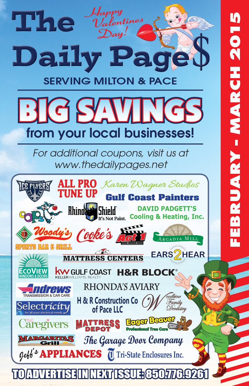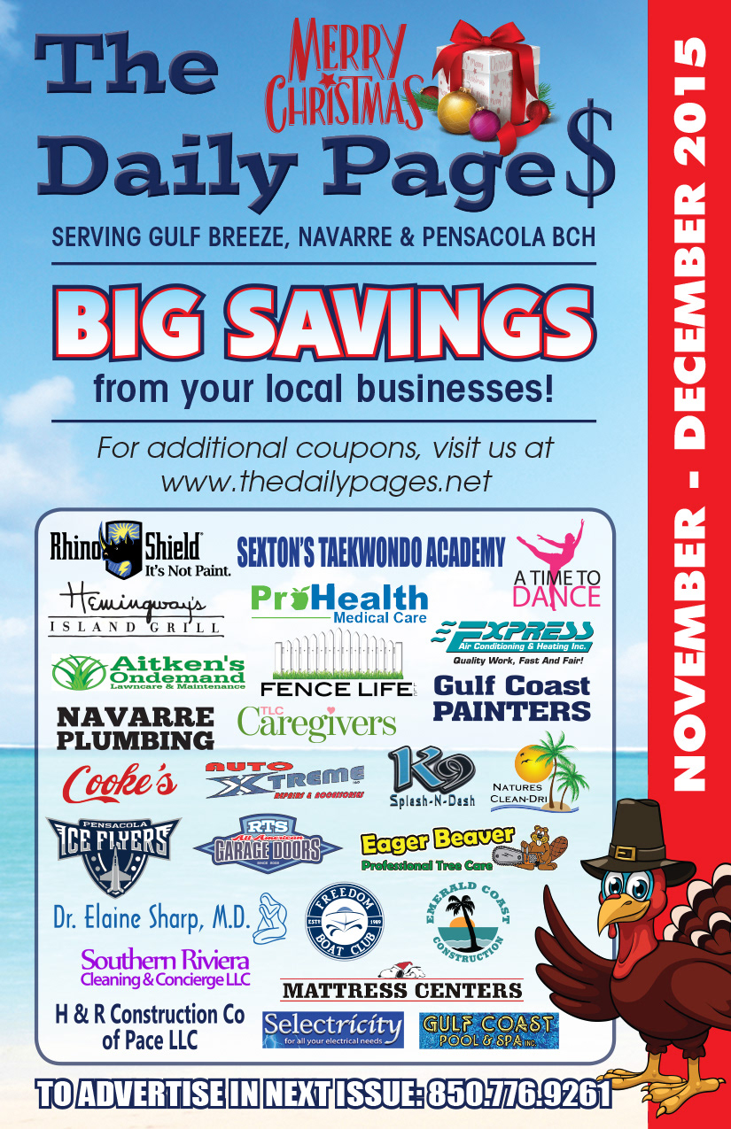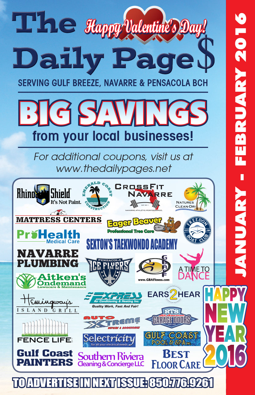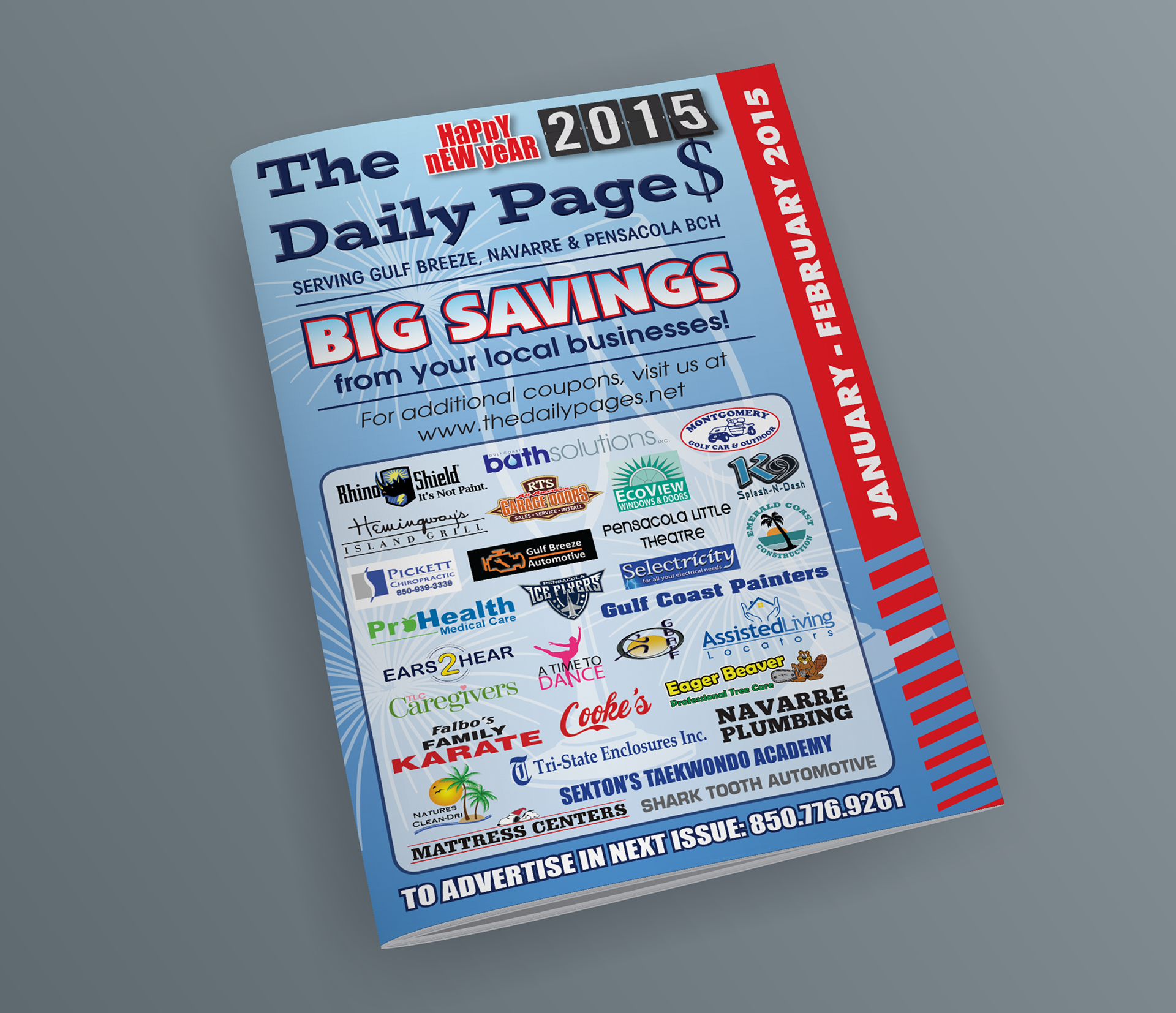 Covers for The Daily Pages - a coupon mailer focused on local Gulf Coast businesses. Each issue's cover highlighted the businesses featured inside.